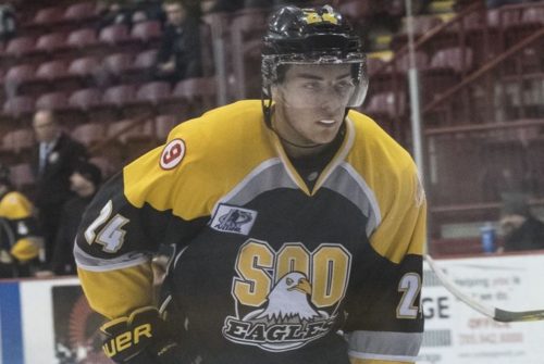 PHOTO: Soo Eagles rookie defenseman Carmen Scarfone. (Photo by Ali Pearson.)
