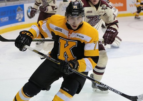 PHOTO: Newly-acquired forward Michael Dal Colle had an impressive debut for the Kingston Frontenacs with two goals in a 5-3 win over the Peterborough Petes. (Photo by Billy Kimmerly.)
